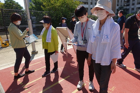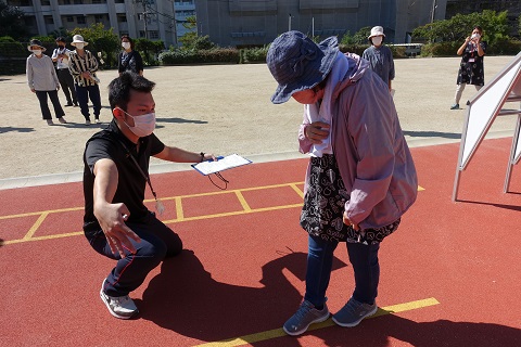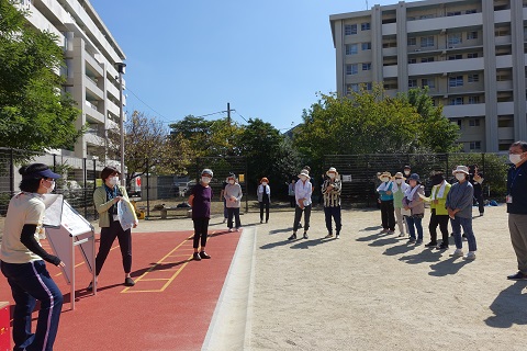 「区長もかたろう」とは、区長が、さまざまな分野で先進的な取り組みや地域活動をしている団体等の活動に直接参加し、かたりあいながら、区行政に関する諸問題の情報を共有し、今後の市政の参考とすることを目的とする広聴事業です。10月15日金曜日に、福浜公園で行った健康パークステーションを活用した公民館主催の健康講座に区長が参加しました。