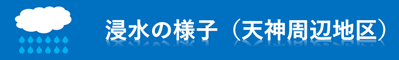 平成11年6月29日に発生した集中豪雨(時間最大雨量79.5ミリメートル)により,天神周辺地区では,家屋やビル,地下空間が浸水しました。 また,平成19年7月12日には再び浸水被害が発生し,対策が必要となっています。