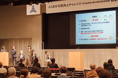 在宅高齢者の要介護状態を改善するため、福岡市が令和4年度から実施している「ふくおか元気向上チャレンジ」の表彰式と、タレントの西川ヘレン氏による講演会を令和5年3月22日(水曜日)に開催しました。