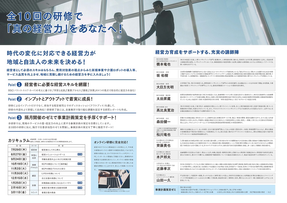 令和3年度 介護事業所の経営力強化研修 第3期生を募集します