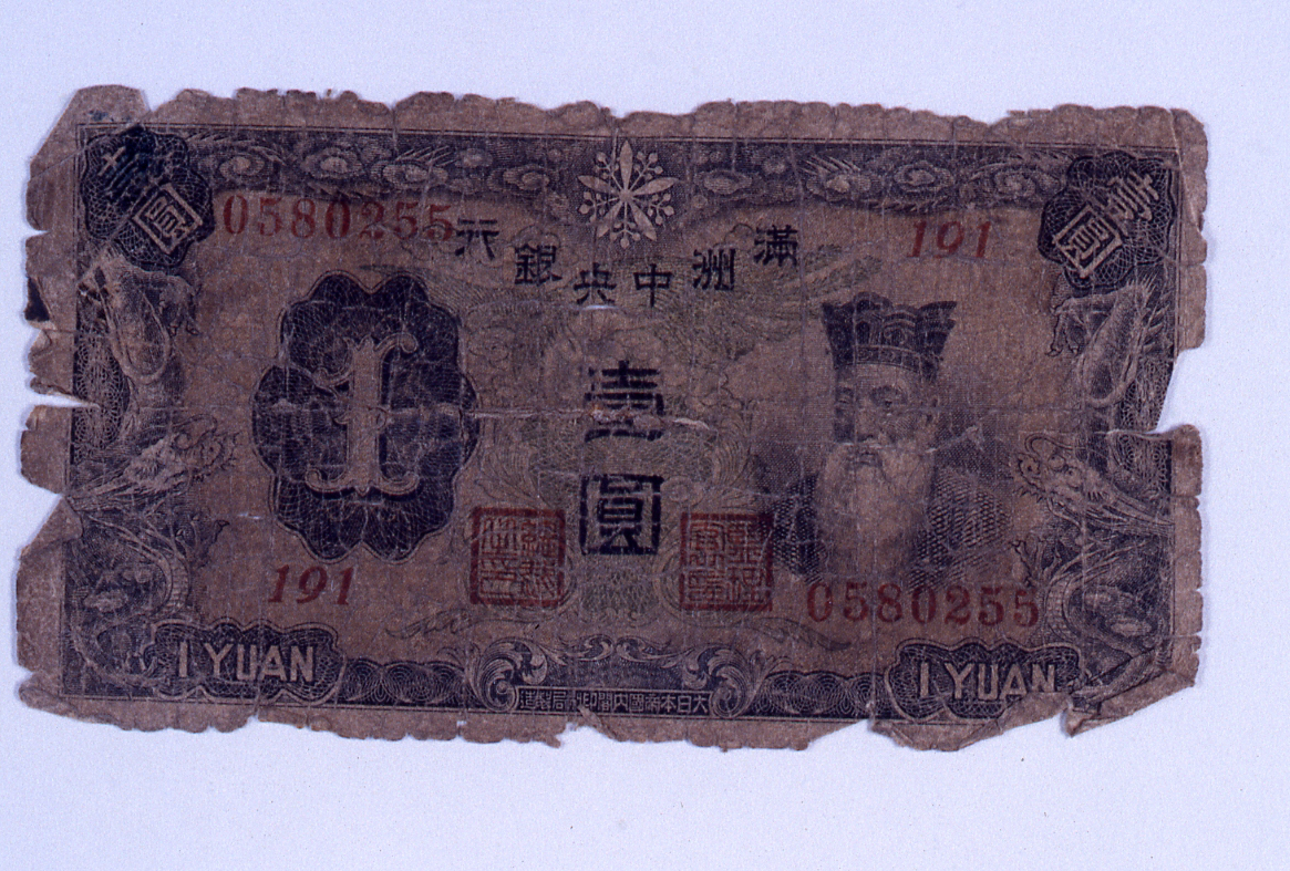 現在位置: 福岡市ホーム の中の健康・医療・福祉 の中の福祉・障がい者 の中の戦没者遺族・戦傷病者等への援護 の中の引揚港・博多 の中の引揚資料検索(一覧) の中のⅠ.引揚前・海外における生活資料 / 金融関係(1) の中の紙幣「壱円」(昭和戦前期)