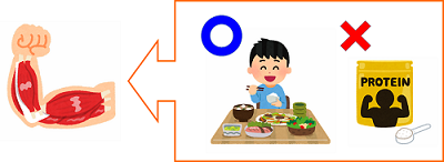 たんぱく質のみを摂るだけでは、筋肉はつきません! プロテイン剤は絶対に必要、ではありません! |