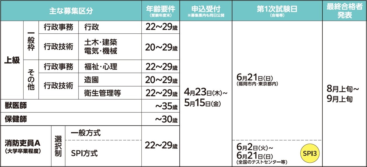 令和8年度福岡市職員(上級、消防吏員A等及び社会人経験者)採用試験等について(令和8年4月2日)(PDF:314KB)