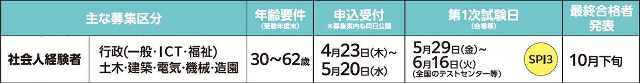 ※募集区分ごとに、必要な免許・資格・職務経験の要件があります。また、募集区分・受験資格・日程等については変更になることがあります。詳しくは、4月23日(木曜日)に公開予定の募集案内で確認してください。