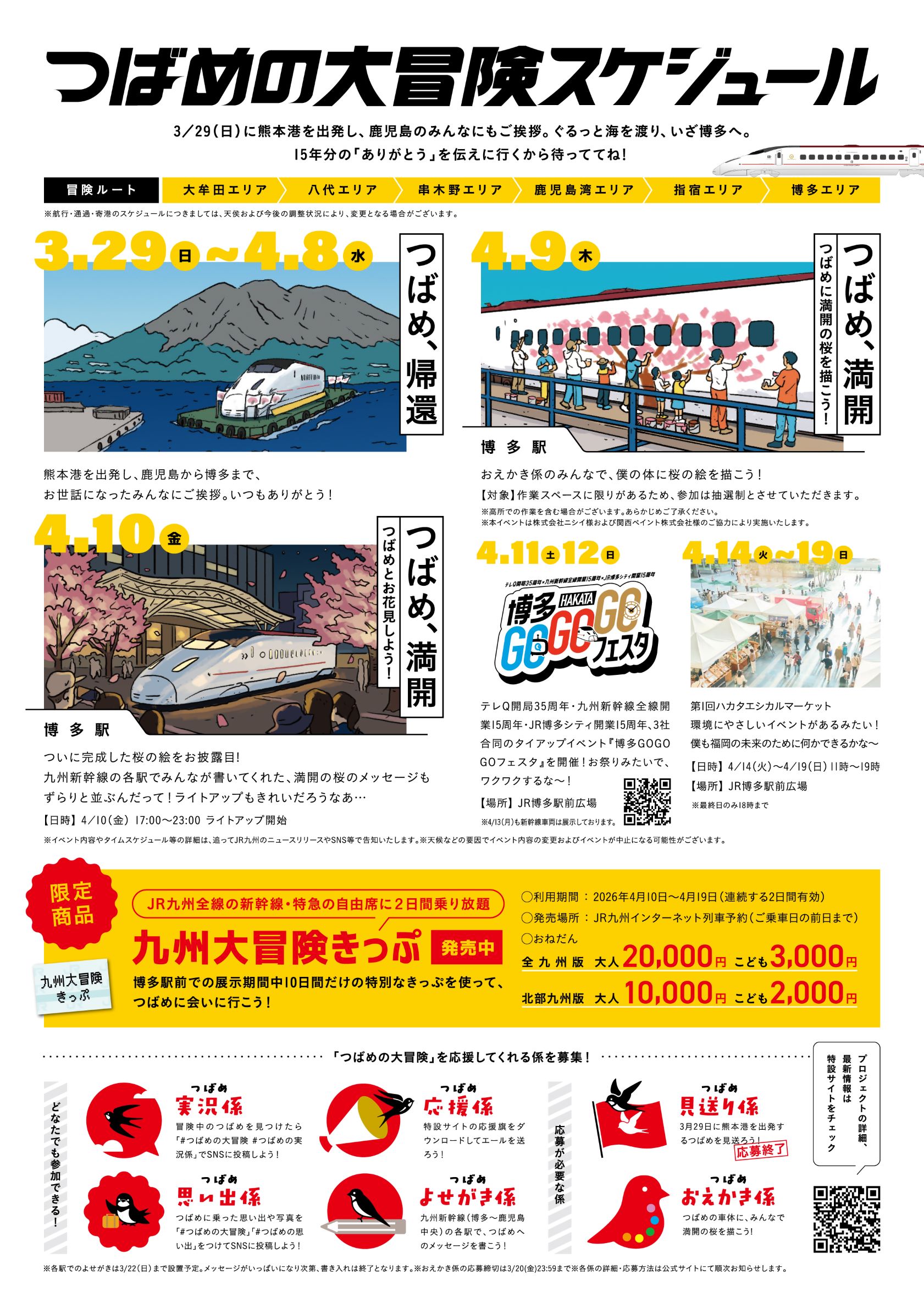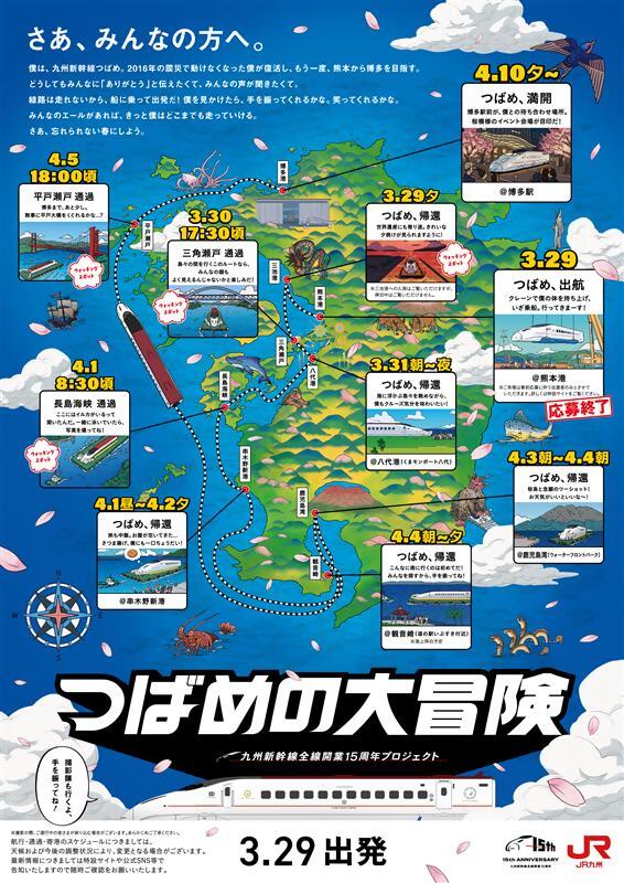 2026年3月12日、九州新幹線はおかげさまで全線開業15周年を迎えました。JR九州では、15年間の感謝を込めて「つばめの大冒険」プロジェクトを実施中です!