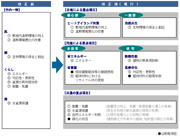 市内一律の重点項目から、立地と用途に応じた重点項目になります。