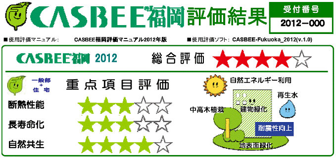 CASBEE新築(簡易版)による総合評価ランクを赤の星★で5段階表示します。