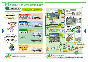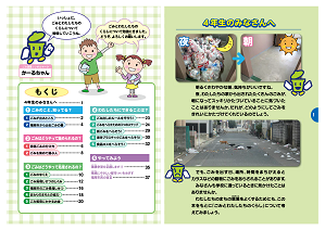 くらしの中(なか)で出る ごみのことやごみ処理(しょり)のしくみ、ごみを減(へ)らす方法(ほうほう)などを分(わ)かりやすく紹介(しょうかい)します。
