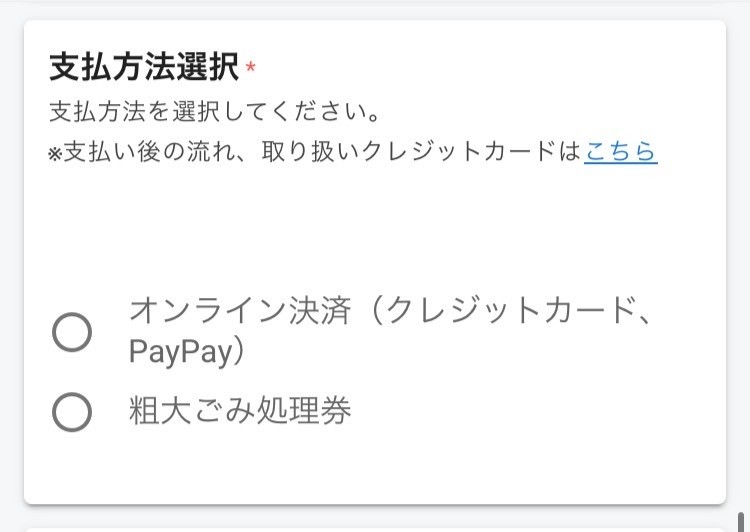 オンライン決済か粗大ごみ処理券のいずれかを選択してください。