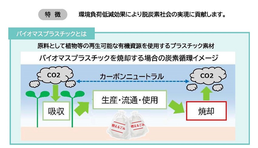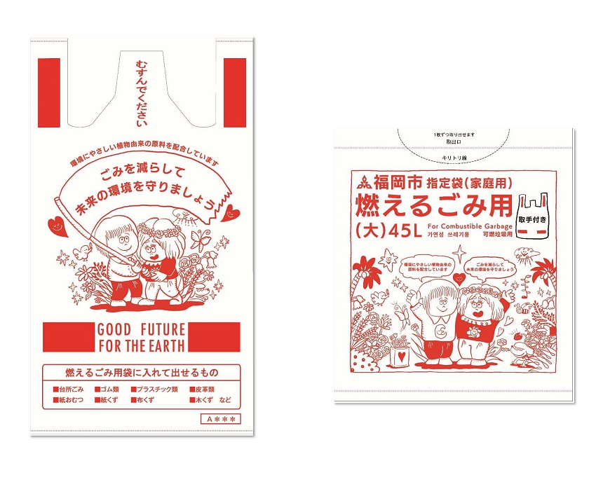 福岡市では、令和4年度からカーボンニュートラルの実現に向けた取組みの一環として、植物由来の素材(バイオマスプラスチック)が配合された、燃えるごみ用の指定袋を製造・販売しています。