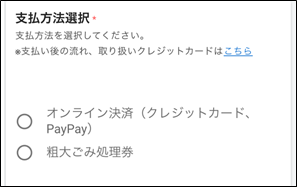 (1)LINE受付の申込画面の「支払方法選択」で「オンライン決済」を選択し、決済画面へ進みます。