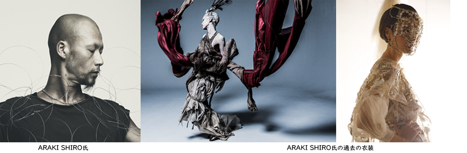 ARAKI氏はレディー・ガガやMISIA等,国内外多数のアーティストの衣装を手掛けています。2017年より福岡市に拠点を移し、活動中。このファッションショーでは,新作数点を発表予定です。