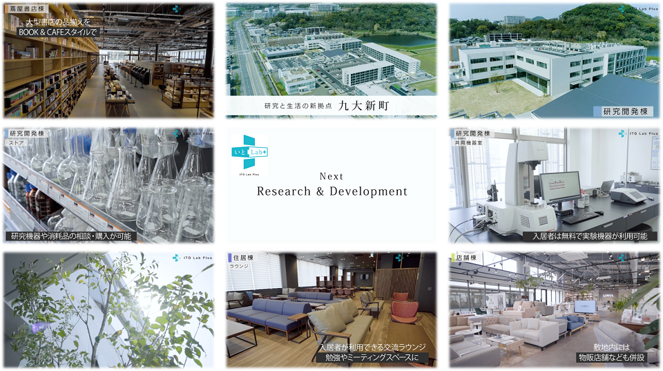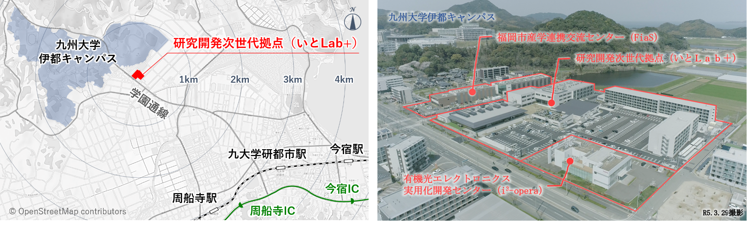 これまで当地区においては、九州大学伊都キャンパスに隣接する立地を活かし、福岡市産学連携交流センター(FiaS)の開設、有機光エレクトロニクス実用化開発センター(i3-opera)の誘致などを進めてまいりましたが、令和5年4月に新たに研究開発次世代拠点(いとLab+)が開業を迎えました。