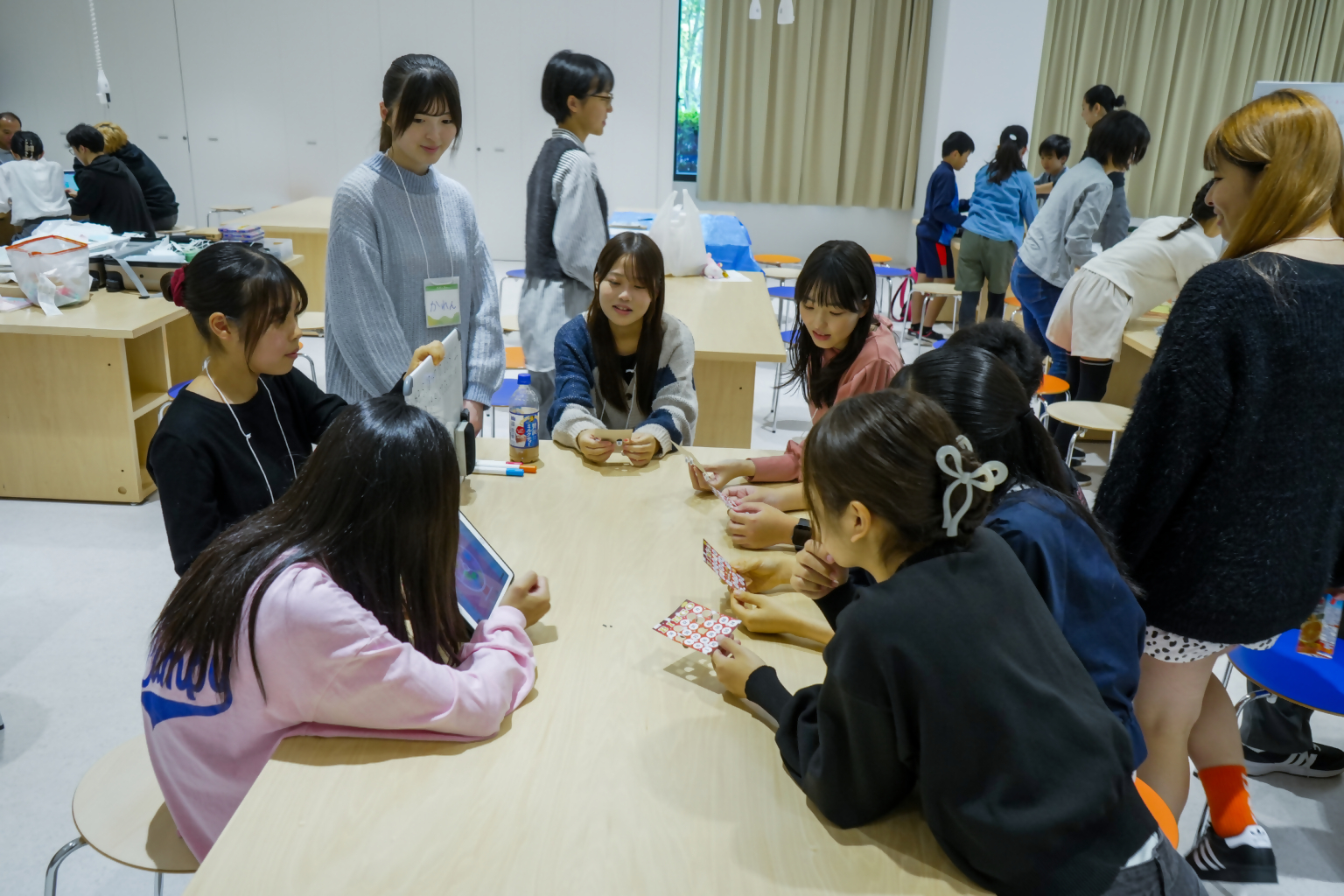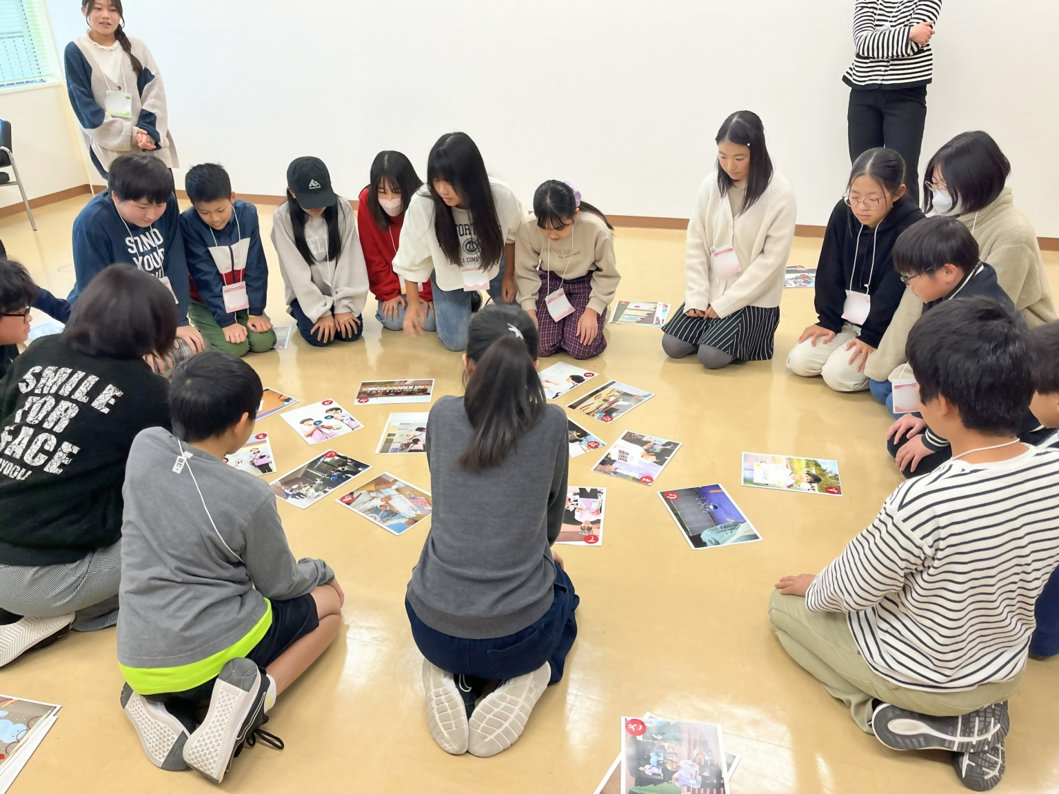 ミニふくおか当日のまちの様子やこれまでの活動で大切にしてきたことについて振り返りました。ミニふくおか子ども実行委員会の最後の活動は、「かるたづくり」でした。ミニふくおか2024を振り返りながら自分の言葉でかるたを作りました。