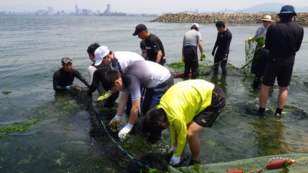 調査には,博多湾NEXT会議会員32名が参加し,うち8名は高校生で,積極的に調査に取り組んでいました。