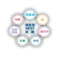 博多湾NEXT会議は,市民,市民団体,漁業関係者,企業,教育,行政など多様な主体が連携・共働し,環境・経済・社会の統合的向上に取組みながら,豊かな博多湾の環境を未来の世代に引き継いでいくことを目的とした組織です。