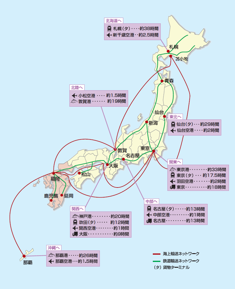 博多港(福岡市)から全国への陸・海・空の交通ネットワーク