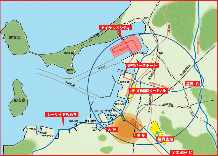 博多港(福岡市)は全ての輸送モード拠点(ターミナル)が半径5㎞圏内に集積