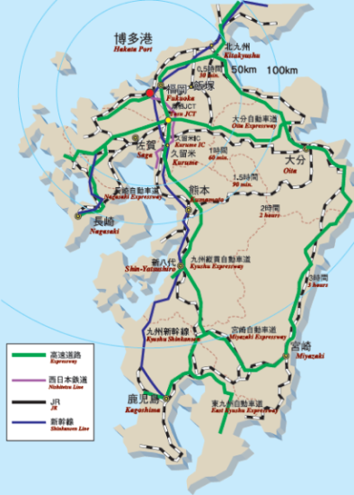 九州の幹線物流ネットワーク(高速道路、鉄道)