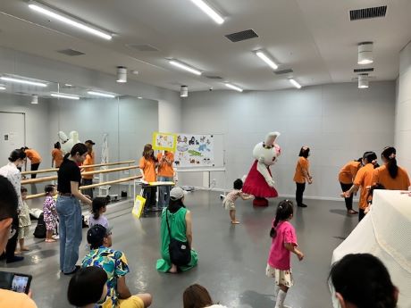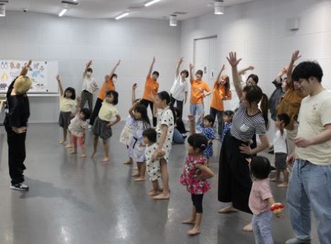 次は、スタディオパラディソによるヒップホップダンスです。かっこいい音楽に合わせて、パワフルな動きで踊ります。先生の分かりやすい指導で難しいステップにも挑戦しながら子どもも大人も夢中になって踊りました!