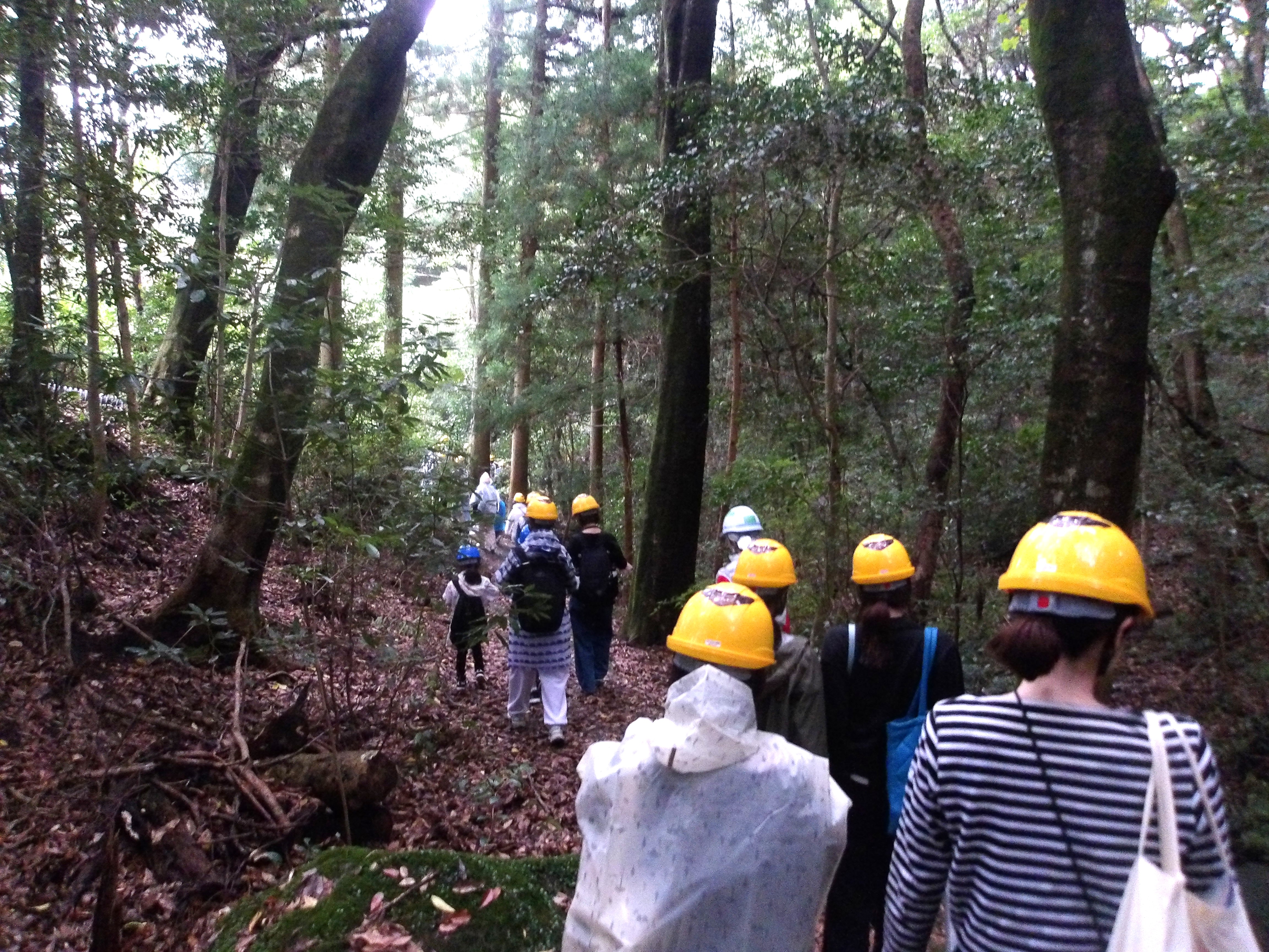 油山の木々を観察しながら歩いた後、森の手入れ体験や小枝を使ったクラフト体験を行います。