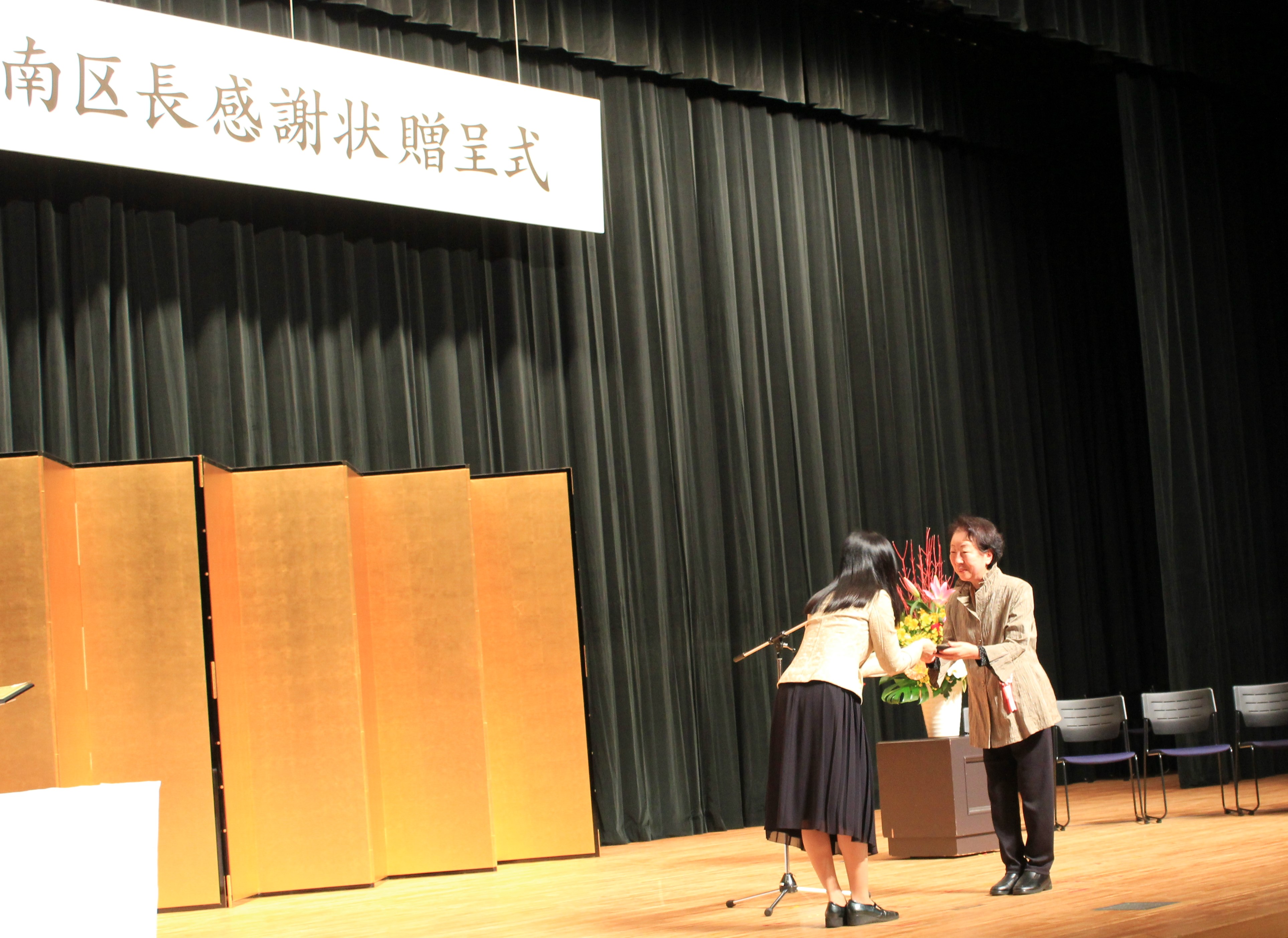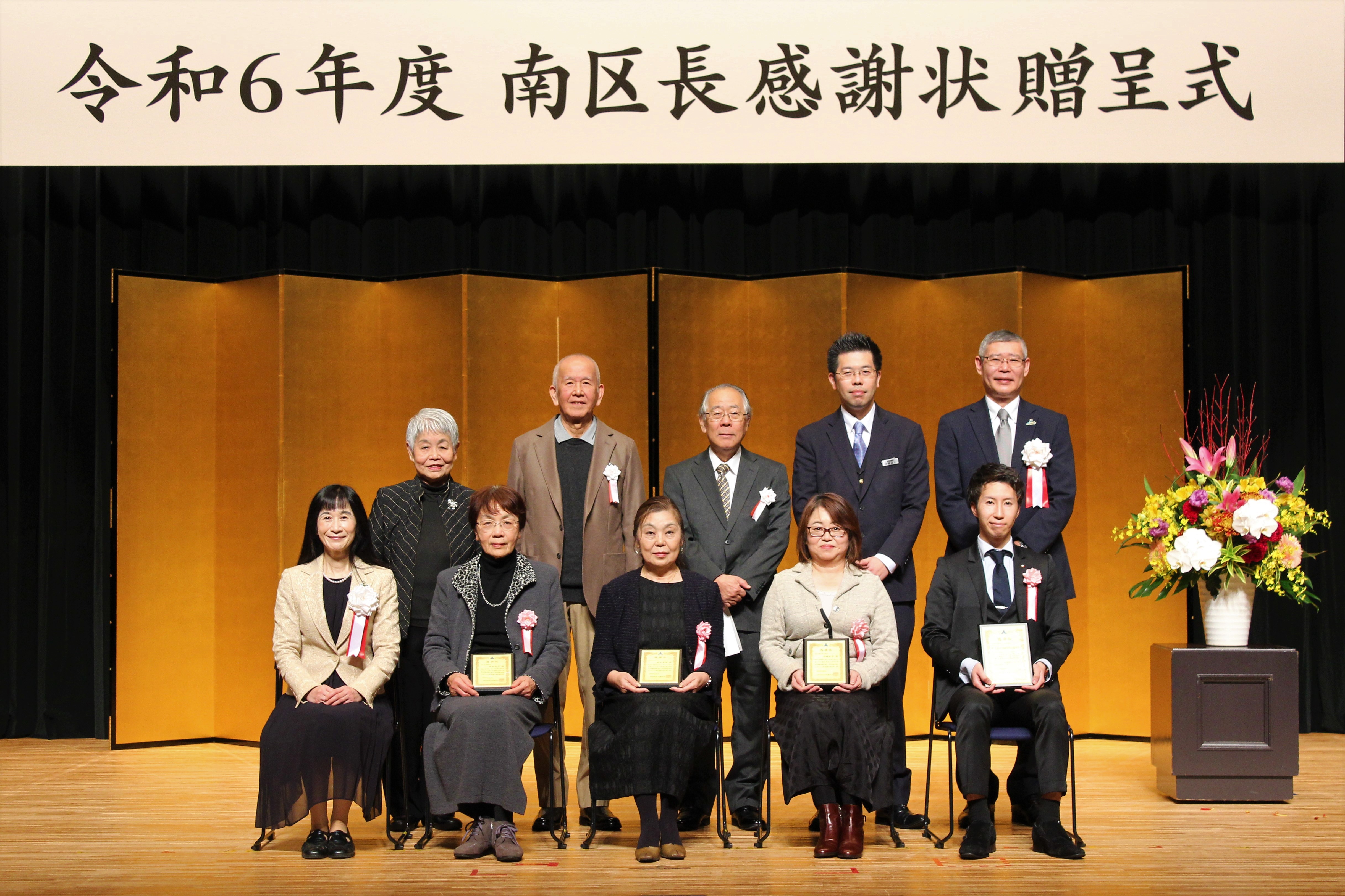 南区では、昭和54年度から、地域において各種事業に自主的かつ積極的に参加し、またはこれを奨励し、地域コミュニティづくりに貢献されている個人及び団体・企業に対し、区長から感謝の意を込めて「南区長感謝状」を贈呈しています。