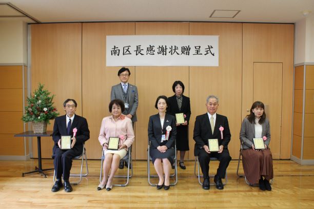 南区長から受賞者に対して様々な活動を通じた地域コミュニティづくりに対する感謝のことばをお伝えしました。