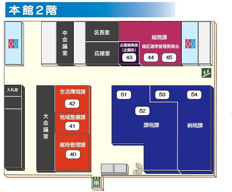 | 44番 | 区の総合的連絡調整、庁舎管理、災害対策 各種統計調査、契約、日本赤十字社 |