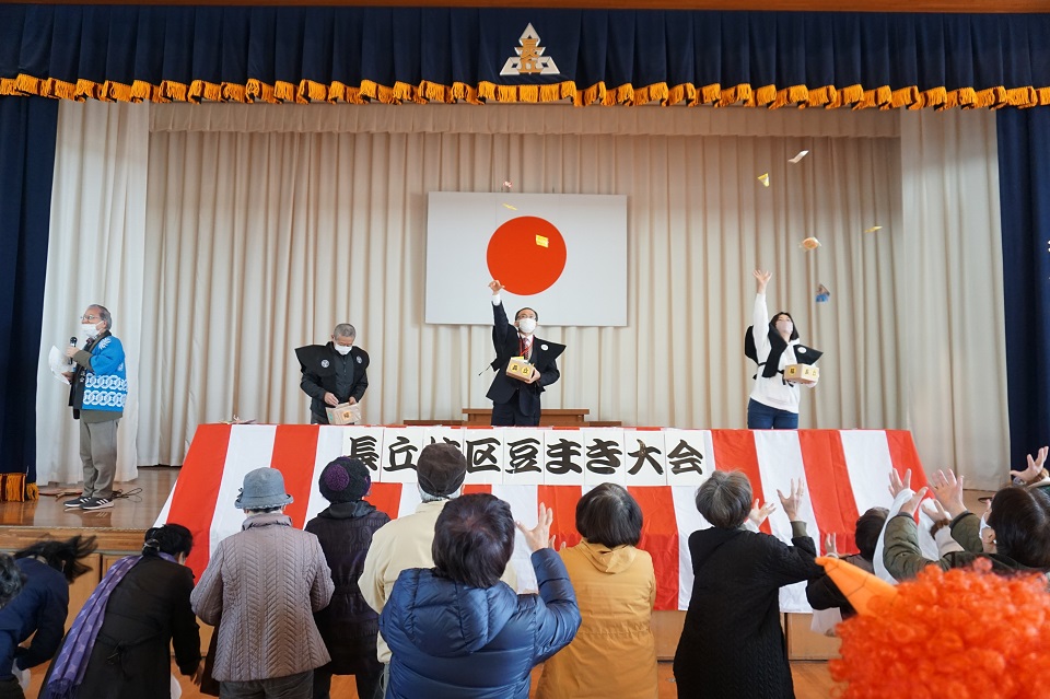 2月5日(日曜日)に長丘校区で行われた「豆まき大会」に久田区長が参加しました。