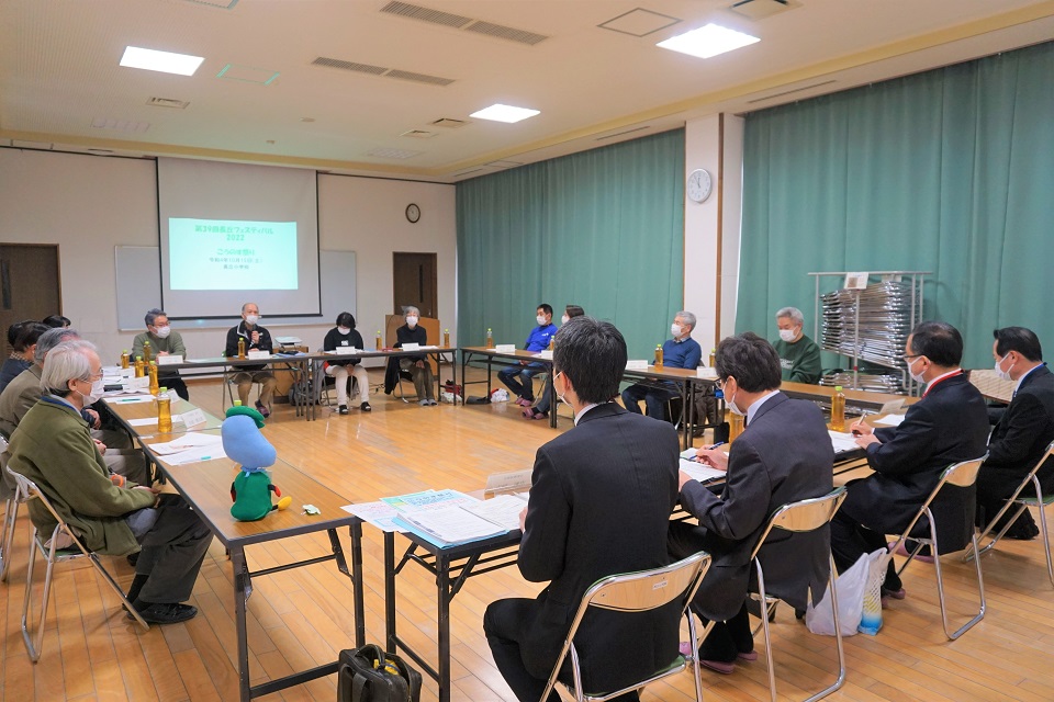 豆まき大会の後には公民館で懇談会を実施し、豆まき大会についてや、コロナ禍で開催するために事前予約制で行った「こうのす祭り」についての思いや取り組みについてのお話を伺いました。