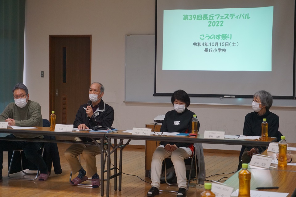 久田区長は「お話を伺い、『なんとか地域の皆さんのために喜んでもらえるお祭りをする』という校区の皆さんの熱い思いが伝わってきました。懇談の中で出た『長丘ってすばらしいな』という言葉にも大変共感いたしました。この経験が皆さんの貴重な財産となり、さらに街をよくしていくという思いが街全体に広がっていくといいなと思います」と話しました。