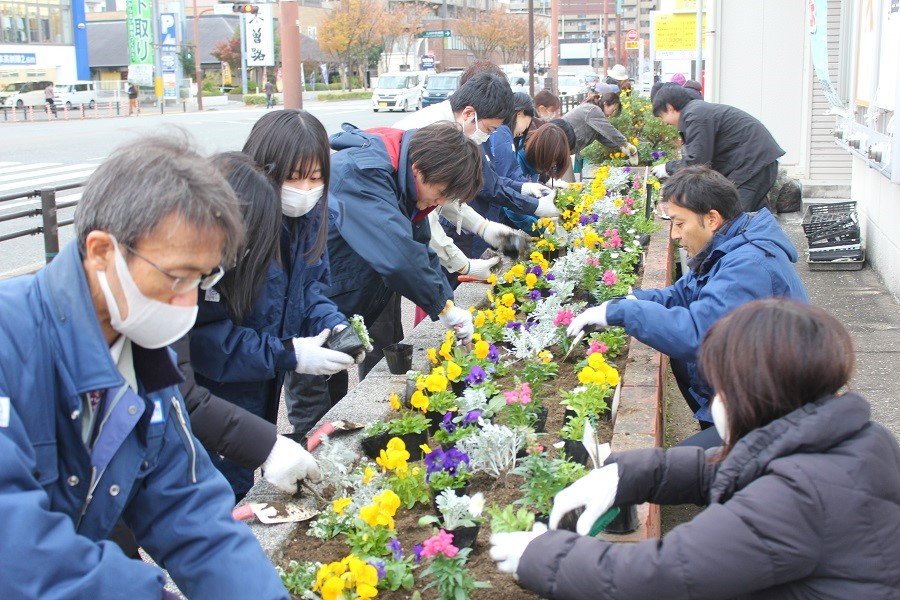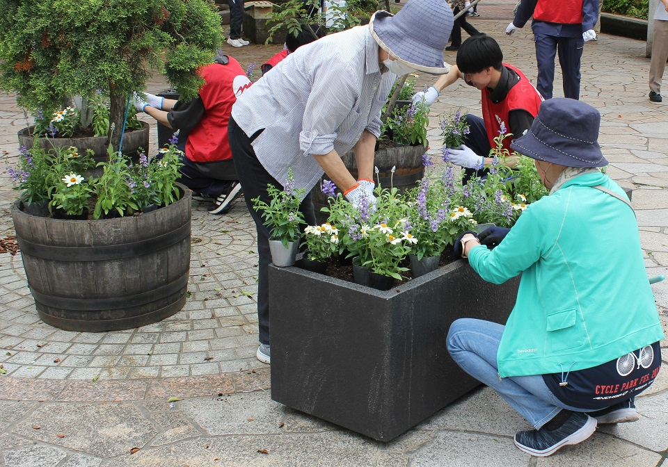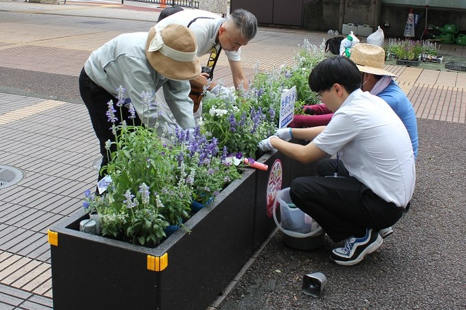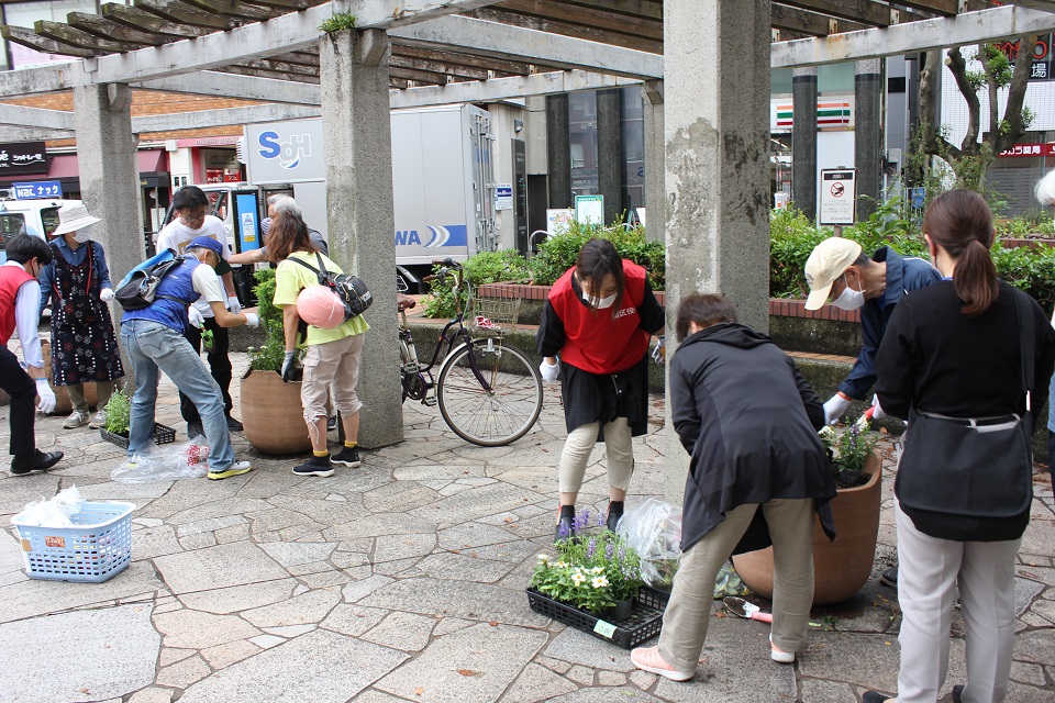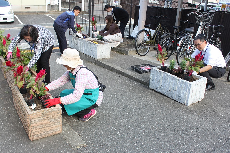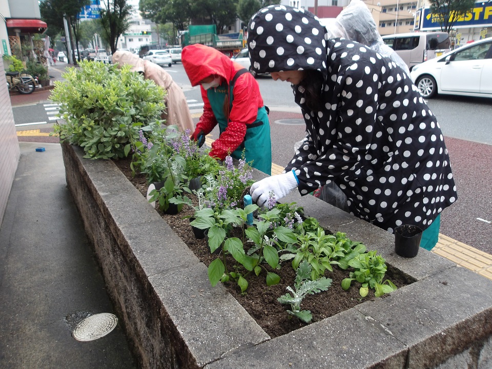 5月12日に西鉄大橋駅西口の花壇の植え替えが行われました。お立ち寄りの際はぜひご確認ください。