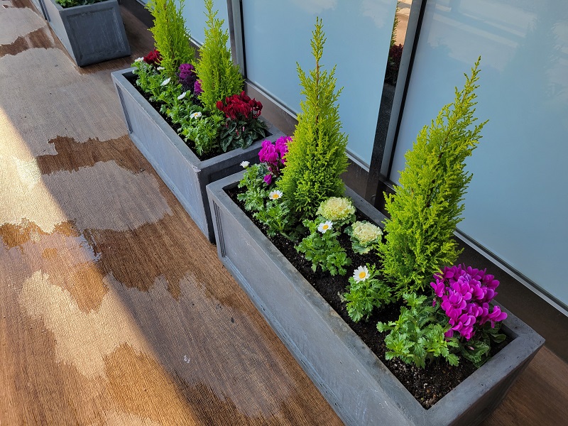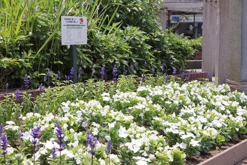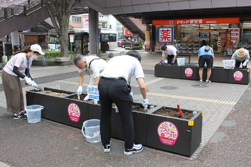 福岡市が推進している一人一花運動に共感し、大橋駅近くである玉屋555大橋店に花壇を設置しました。