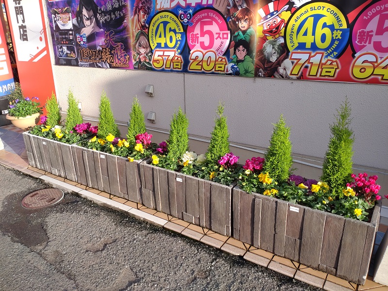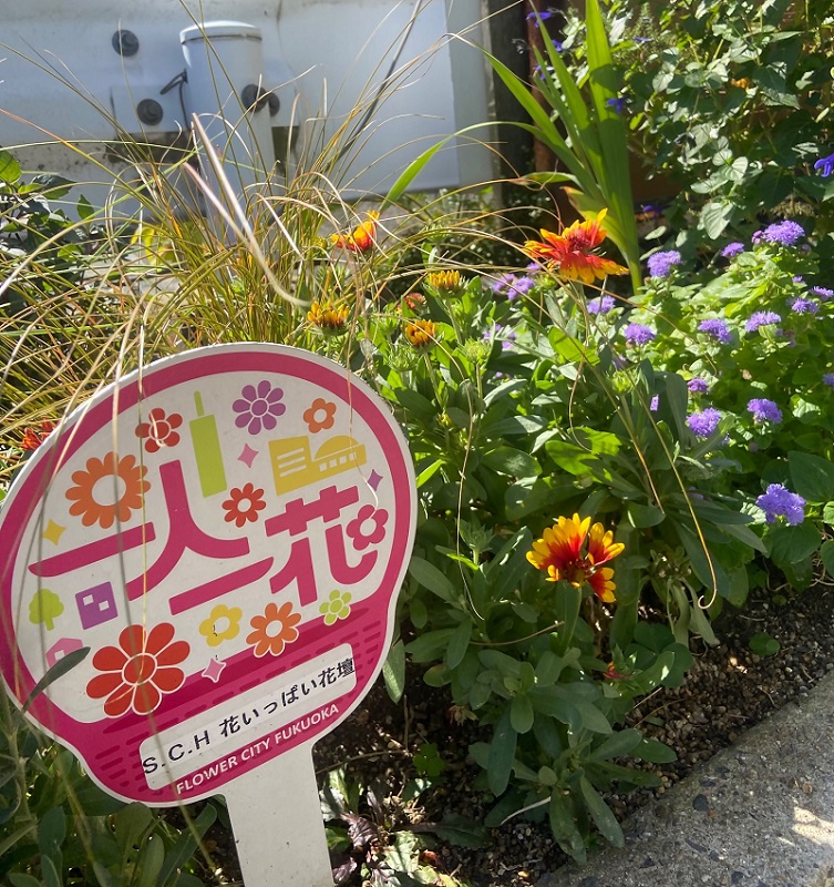 『一人一花!』を合言葉に、福岡市を花と緑いっぱいのまちに出来る様、微力ながら店舗前に花壇を設置しました。