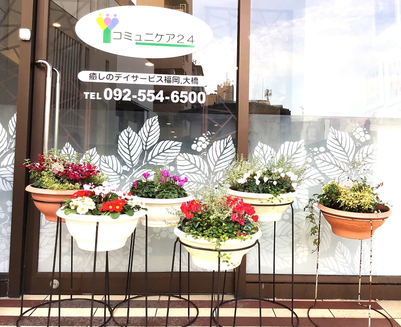 癒しのデイサービス福岡大橋では玄関前に季節の花を育てています。