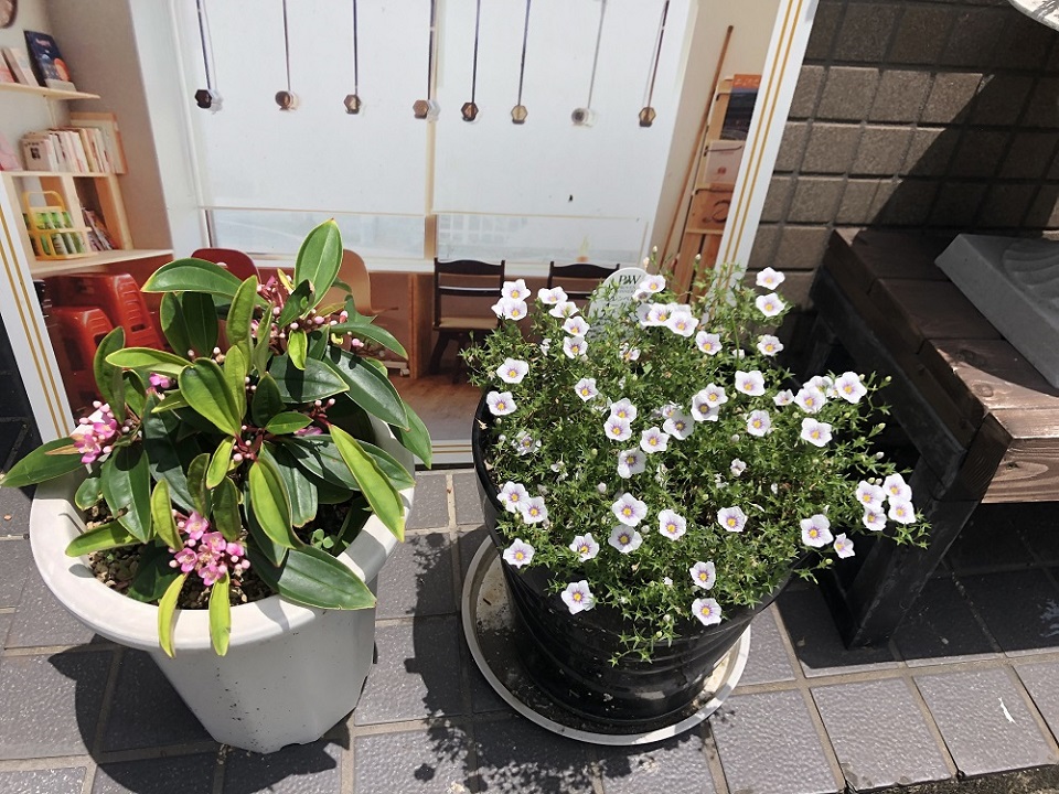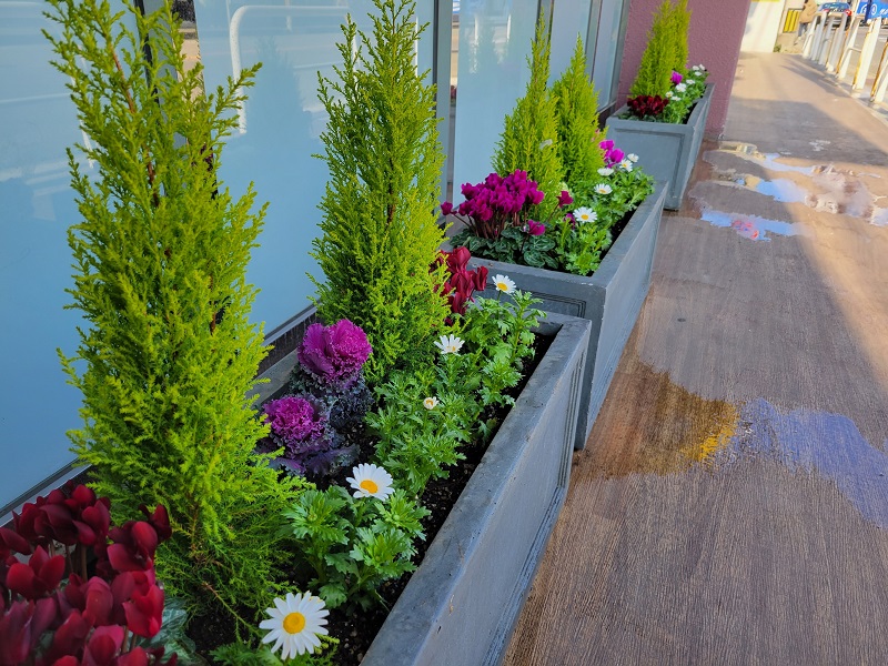 福岡市が推進している一人一花運動に共感し、店舗前に花壇を設置しました。