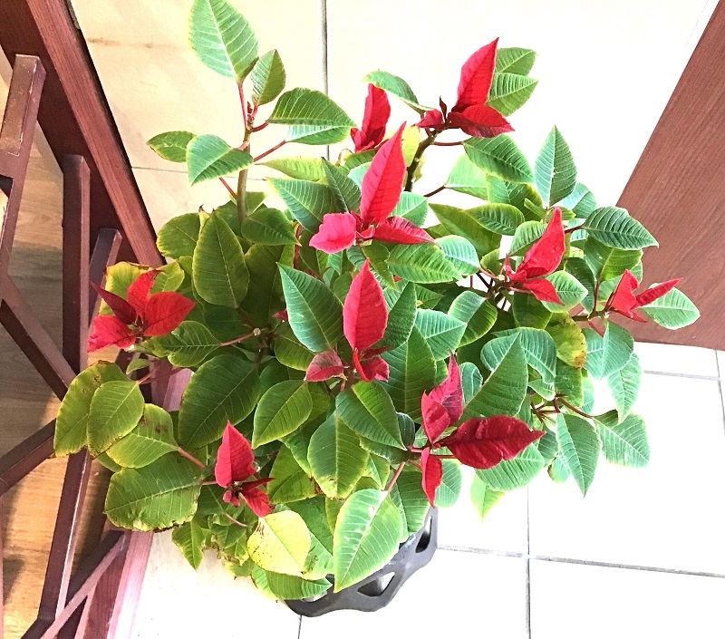 昨年小さかったポインセチアも夏を越し短日処理をして赤く色づき始めました。