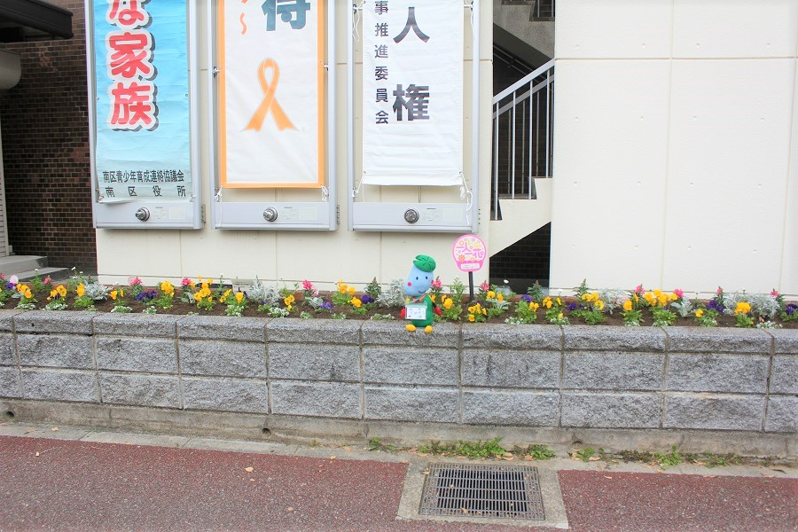 10月17日に、「地域に花を咲かせよう会」「さわやかスタッフ南の会」の皆さんと区役所職員で区役所花壇の植え替えを行いました。