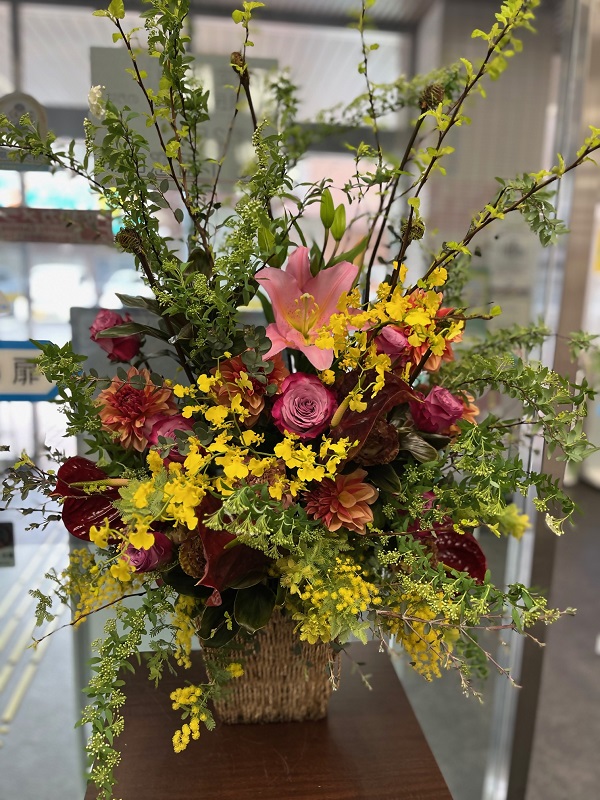 ●南区役所本館の玄関に花が飾られています