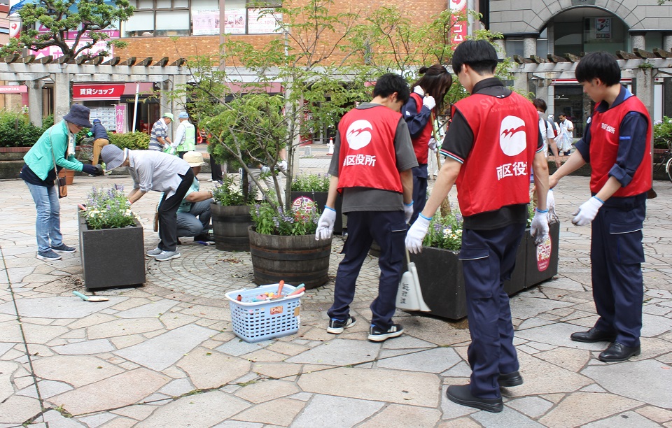 6月1日に、市民ボランティアの「さわやかスタッフ南の会」、「地域に花を咲かせよう会」のみなさんと区役所職員で区役所の花壇の植え替えをしました。