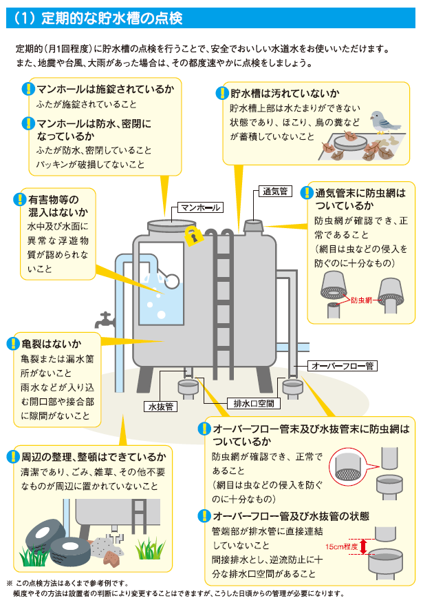 貯水槽水道のご利用にあたっては、以下の内容にご留意いただき、適正な管理を行っていただきますようお願いします。