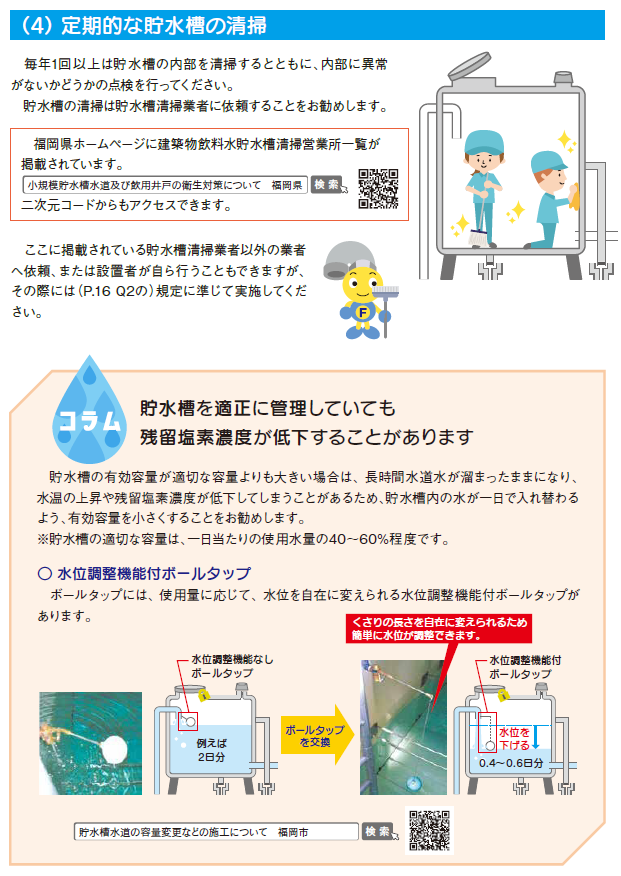 貯水槽水道の設置者は、入居者の安全で快適な生活を守るためにも、衛生管理には十分に配慮してください。