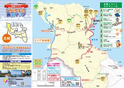 この度、その取り組みの一つとして、「西区の宝」を知っていただくとともに、気軽に足を運んでもらおうと、「西区の宝散策マップ(姪浜・愛宕・下山門エリア、今宿・周船寺エリア、野方・金武エリア、今津・元岡エリア)に引き続き、第5弾として「西区の宝散策マップ(北崎エリア)」を作成いたしました。