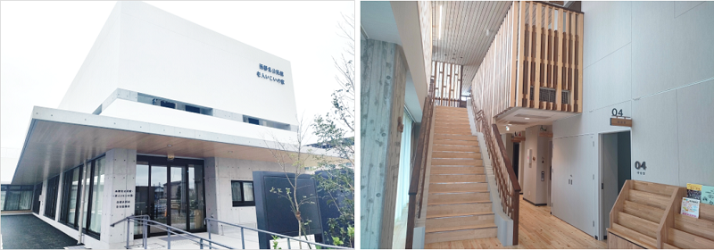 モノトーンを基調とした外観で、館内は木のぬくもりが感じられる温かな雰囲気です。