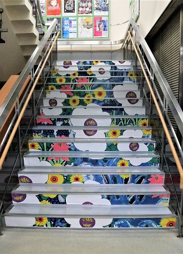 早良区では花をテーマにした階段アート等を展示しています。