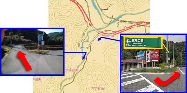 • 坊主ヶ滝ルート・花乱の滝ルート分岐点
