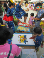 夏休み:清掃活動できれいになった城西公園でラジオ体操を行います。校区の夏祭りでは、何をするか?子ども達自身で考え、ピンボールや看板を手作りしたり、おもちゃを販売したりしました。