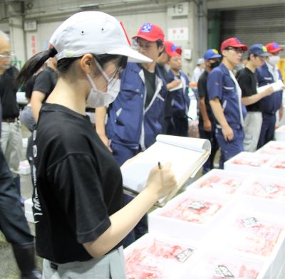 永村:はじめは大きな声を出されることに怯えていましたが、今はどんな大きな声でも慣れました。場数を踏むのが一番ですね。仲買人の人たちも、せりを盛り上げてくれたりして、雰囲気づくりに協力してくれる感じが温かいです。