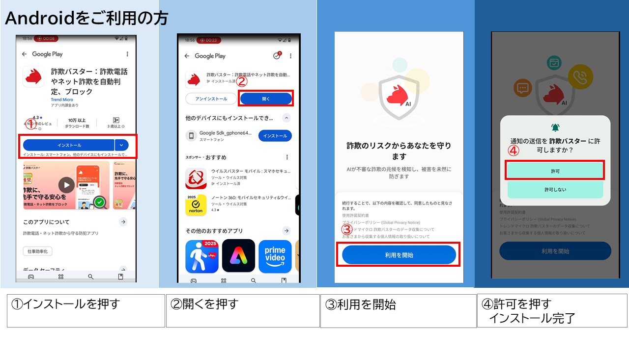 福岡市における特殊詐欺の認知件数は年々増加しており、令和6年の特殊詐欺の認知件数・被害額はともに過去最悪となっております。そこで、特殊詐欺等の被害防止に向けて、トレンドマイクロ株式会社と共働で、スマホ用アプリ「トレンドマイクロ 詐欺バスター」を活用した取組みを行います。