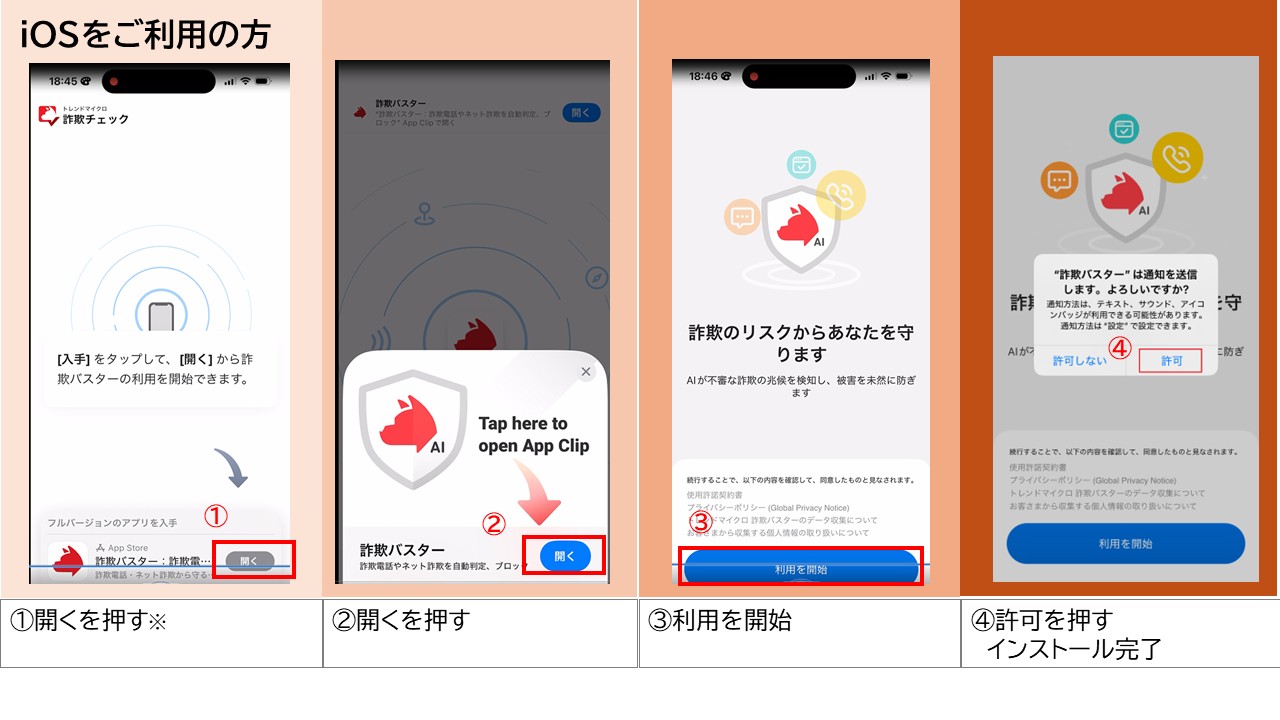 詐欺の手口は日々進化し、巧妙化しているため、すべての詐欺を防ぐことができるわけではありませんが、アプリ内で詐欺の手口を具体的に紹介し、利用者の意識向上をサポートすることで、詐欺に遭うリスクを軽減します。